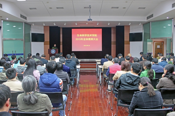 4月13日上午,bat365正版唯一官网在生命药学楼树华多功能厅召开全体教师大会。院长邓子新,院党委书记仰颐以及全体教师出席了大会。会议由院党委副书记郑敏主持。