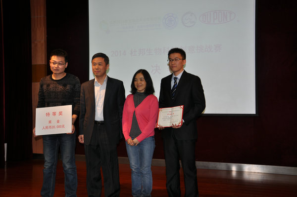 12月18日,由bat365正版唯一官网和杜邦工业应用生物科技事业部联合主办的“2014杜邦生物科技创意挑战赛”在bat365正版唯一官网圆满落下帷幕。来自bat365正版唯一官网的酶立方团队获得大赛特等奖,另有来自bat365正版唯一官网、致远学院、农业与生物学院的九支队伍分获一、二、三等奖。