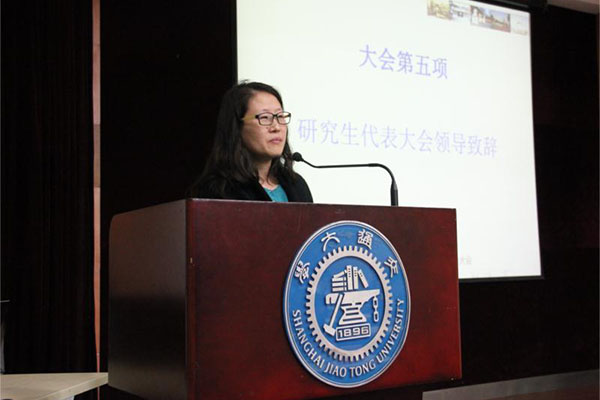 会上,党委书记仰颐代表学院向研代会的召开表示热烈的祝贺,对与会的各位研究生代表表示衷心的感谢。她希望学院每位研究生在以科研为重的同时,能够全面发展,按照“学习、工作、娱乐”的优先顺序合理安排生活。随后,她对提案报告中的问题进行了回应,表明相关职能部门会对提案中提及的问题进行讨论研究,并通过新一届主席团及时反馈。最后,她对新一届研会提出建议,希望能够以引领学生理想信念为前提,工作中不断开拓创新,搭建学术交流平台,展示在读研究生的学术风采。