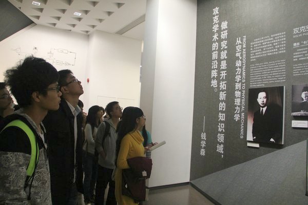 在“中国航天事业奠基人”展厅,同学们感叹于钱老初期艰苦的研究环境下的雄心壮志;在“科学技术前沿的开拓者”展厅,同学们领略到钱老卓越的科学预见性和创新精神;在“人民科学家风范”展厅,一句“我的事业在中国,我的成就在中国,我的归宿在中国”折射出钱学森学长爱党爱国的伟大品格;在“战略科学家的成功之道”展厅中,钱老超凡的艺术修养让同学们惊叹不已。通过馆内的一件件展品,钱学森学长爱党爱国的政治品格、严谨求实的科学态度、开拓进取的创新精神、无私奉献的高尚情操鲜活地展现在同学们的面前。
