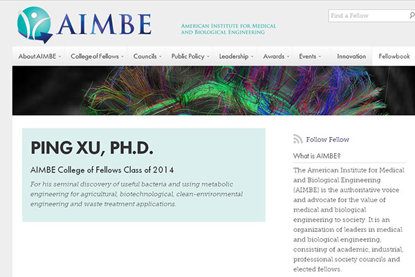 由于在应用与环境微生物学(Applied & Environmental Microbioloy),尤其在环境污染物毒物的微生物分解代谢领域的卓越贡献,许平教授最近当选为美国医学与生物工程院(American Institute for Medical and Biological Engineering, AIMBE)会士(Fellow)。授聘仪式已于3月24日在美国首都华盛顿DC美国科学院演讲大厅举行。AIMBE(http://aimbe.org/)汇聚了世界上最具创新的医学与生物工程领域的学术精英,其会士(AIMBE College of Fellows)由世界医学与生物工程领域最杰出(Top 2%)的学者组成,每年经过国际同行推荐与严格评选产生,最后一轮须经现有的Fellows投票产生。