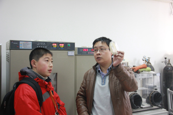 15日下午,邀请到了研究员张晓君,副研究员唐鸿志和杨广宇,分别带领同学们走进实验室,与科研近距离接触,进一步体会生命科学对人们的生活带来的巨大影响。各位老师介绍了自己的研究领域,深入浅出地降解各种仪器的用途和使用方法。唐老师更是结合近期的研究成果,从生物、医学和伦理的角度为同学们做出全面而客观的解答。同学们听得津津有味,不时与老师互动交流。在简要的介绍之后,同学们对老师的讲解给予了积极的反馈。有的同学结合当今的社会热点和前一天转基因基地的参观活动,针对转基因食品的安全性与老师展开讨论与交流。此外,同学们十分珍惜本次与专家面对面的机会,精心准备了采访稿,探寻老师的科研历程。