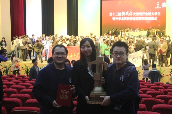 10月17日晚,第十三届“挑战杯”全国大学生课外学术科技作品竞赛决赛在苏州落幕。bat365官网2009级本科生于一能、索洋、吴佳杰团队以《优化酶表达与定位促进细菌脂肪酸合成的研究》项目一举夺得本届“挑战杯”生命科学组特等奖。该项目由Bio-X中心贺林院士与马钢副教授担任指导老师。期间项目的完善和评审还得到了学院领导与院团委老师的悉心指导和帮助,得到了校团委等相关部门的大力支持。