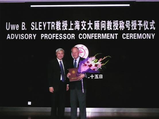 2013年5月25日上午,奥地利科学院院士、纽约科学院院士、欧洲科学与艺术学院院士、奥地利自然资源与应用生命科学大学生物纳米技术中心主任Uwe B. Sleytr教授上海交大顾问教授称号授予仪式在生物药学楼树华多功能厅隆重举行,上海交大副校长吴旦教授出席授予仪式并为Sleytr教授颁发上海交大顾问教授聘书,授予仪式由bat365正版唯一官网张雪洪副院长主持。