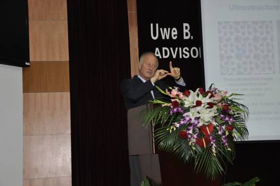 在授予仪式期间,Sleytr教授作了题为“S-layer protein:general principals and many applications”的精彩报告,在深入研究了表层蛋白的性质特点的基础上,他成功地将纳米生物技术和仿生学进行了很好的结合,并将其成功产业化。Sleytr教授致力于将纳米技术、纳米生物技术及仿生学相结合,尤其对功能超分子结构的装配在生命及非生命领域的应用方面有着精深的研究并取得了许多重要成果。