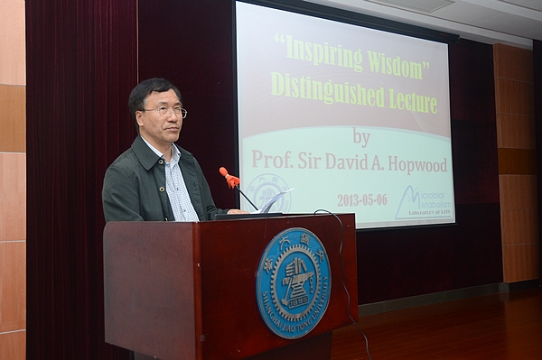 张杰在致辞中介绍了霍普伍德教授在科学研究和培养人才上的成就。霍普伍德教授的整个职业生涯一直致力于链霉菌、特别是天蓝色链霉菌的研究。他所领导的英国约翰·英那斯研究中心链霉菌研究组几十年来在链霉菌遗传学领域一直处于国际领先地位,多次获得国际学术团体的大奖,在国际上享有极高的威望。张杰同时提到,英国是历史悠久的科学强国,百年来一直引领世界科学技术的创新和发展。我国近三十年在经济和社会建设中虽然取得了举世瞩目的快速发展,但能源、环境、公共健康等方面付出的代价相当大,有许多方面要向英国等西方国家学习借鉴。国际学术交流对于国家发展意义重大。他还分享了自己留学英国的故事,勉励同学们要珍惜机会,勤奋学习,刻苦研究,为提升我国科学研究水平而不懈努力。