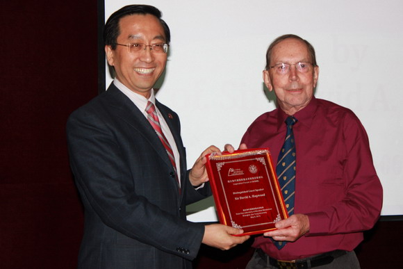 张杰在致辞中首先赞扬了霍普伍德教授的科学研究和培养人才上的成就。他提到,英国是历史悠久的科学强国,百年来一直引领世界科学技术的创新和发展。虽然,近三十年我国在经济和社会建设中取得了举世瞩目的快速发展,但能源、环境、公共健康等方面付出的代价相当大,仍然有许多方面要向英国等西方国家学习借鉴。在国家落后的时刻,国际学术交流对我国的发展帮助巨大,西方院校的学术培养和科研训练帮助我们培养了为国内科学研究的一代人。他还分享了自己留学英国的故事,勉励同学们要珍惜机会,勤奋学习,刻苦研究,不断为提升我国科学研究水平而努力。