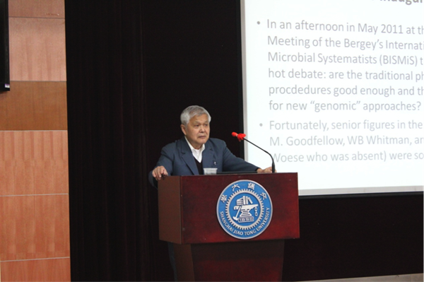 2013年4月25日,应bat365正版唯一官网赵立平教授邀请,复旦大学理论生命科学研究中心郝柏林院士来bat365官网微生物代谢国家重点实验室做了两场学术报告,题为“原核生物分类面临的挑战和机遇”和“CVTree在种以下的高分辨力”。郝柏林院士是我国着名的理论物理、计算物理学家。1980年当选为中国科学院院士,1995年当选为第三世界科学院院士;2005年以来任复旦大学教授,美国圣菲研究所外聘教授,主要从事理论物理、计算物理、非线性科学和理论生命科学的研究,1997年开始,郝院士开始关注和研究原核生物的分类问题,在基因组与细菌的系统发育的关系研究方面取得了很大进展。