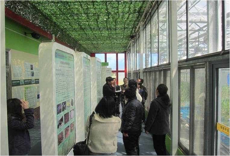 基地工作人员热情地欢迎各位老师,首先介绍了基地的建设历程。在基地精心设计的展板前,讲解员仔细地给大家讲解了转基因生物的研究和产业化历程,我国在转基因生物领域取得的巨大成就和转基因生物的检测和生物安全等多项内容。