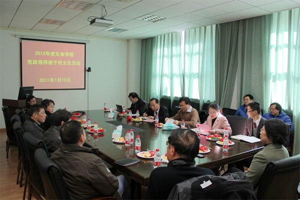 1月10日上午,bat365正版唯一官网2012年度党政领导班子民主生活会在生物药学大楼3—105会议室召开,副校长蔡威、宣传部副部长谈毅出席会议。bat365正版唯一官网党政领导班子成员、系(所、中心)主任、党支部书记及教师代表等参加会议,会议由学院党委书记仰颐主持。
