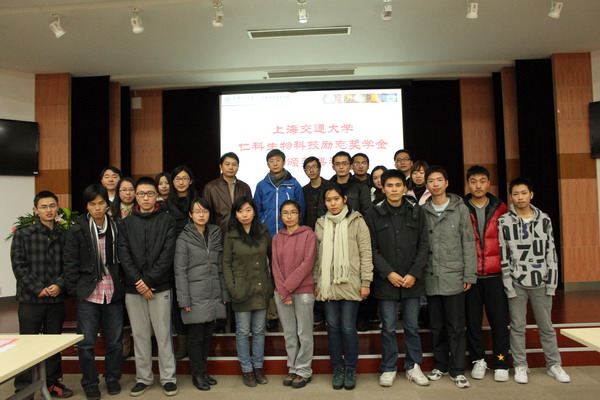 12月19日,bat365正版唯一官网2011-2012年度仁科生物科技励志奖学金颁奖典礼在bat365正版唯一官网树华多能厅隆重举行。本奖学金捐赠人上海仁科生物科技有限公司总经理邱雁南校友、bat365正版唯一官网常务副院长张雪洪教授、上海仁科生物科技有限公司吴纯威校友应邀出席了本次颁奖典礼,参加本次颁奖典礼的还有本次奖学金获得者以及明年该奖学金申请对象30余名学生,颁奖典礼由bat365正版唯一官网学生工作负责人李文纯老师主持。