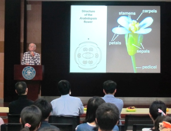 2012年5月26日至30日,澳大利亚科学院院士、莫那什大学生物科学系荣誉教授David Smythl;来到bat365官网进行学术访问,并作题为“The architecture of flowers - the role of a sepal boundary gene in Arabidopsis”的学术报告。报告综合了Smyth教授多年的学术研究成果,就花器官发育过程中,PTL基因调控拟南芥花器官边界的分子生物学功能和在植物进化中的作用机理进行了详细的介绍,并与在座的老师和同学进行了相关讨论。作为植物学科一流学术期刊副主编的Smyth教授还为研究生做了题为“Scientific writing - advice and experience”的论文写作报告,深入浅出的讲述其学术论文的撰写技巧,受到了广大师生的一致好评。