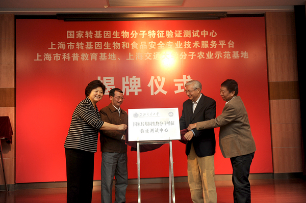 11月2日上午,“国家转基因生物分子特征验证测试中心”揭牌仪式在上海交大bat365正版唯一官网举行。“上海市转基因生物和食品安全专业技术服务平台”、“上海市科普教育基地”、“bat365正版唯一官网分子农业示范基地”揭牌仪式同时举行。北京大学原校长许智宏院士,上海交大党委书记马德秀、副校长吴旦出席揭牌仪式。仪式由上海交大科研院常务副院长刘燕刚主持。农业部、上海市、徐汇区、闵行区,部分国家转基因生物安全委员会委员,上海交大bat365正版唯一官网、农业与生物学院、医学遗传研究所、科研院、后保处、保卫处、设备处、财务处、分析测试中心等有关单位负责人参加仪式。
