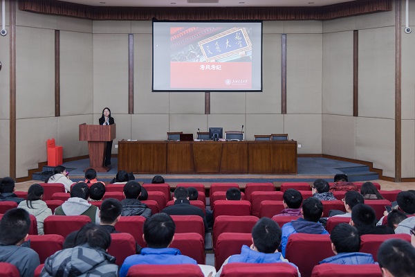 首先,林海韵详细介绍了寒假社会实践活动的组织方案,分别有“我眼中的十九大——交大学子百校宣讲活动”,“我眼中的新时代——发展成就、民生热点调研”和“青年学子的责任与使命志愿公益、校友寻访等”三类活动。她强调了实践的重要意义,向同学们介绍了项目实施和总结评比阶段的注意事项、时间节点,就如何有效开展实践给予了指导。