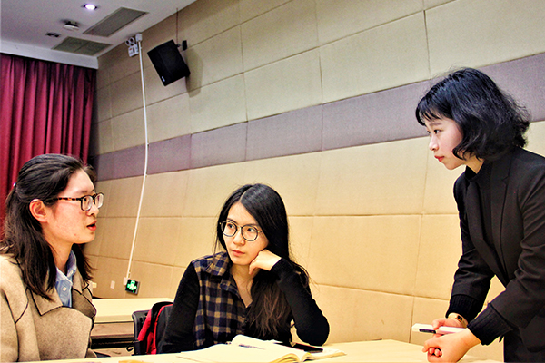 随后,吴月从自我初步评估、识别兴趣、发现自身优势、探知自己的驱动小马达四个方面具体讲述了如何确定职业方向。她强调,自我评估要从才能、兴趣、性格、价值观、专业、行业前景等方面综合考量。在发掘自身优势环节中,同学们两两结队,踊跃参与互动讨论。吴月老师说,若能发现自身长板,并不断加强,比起补齐短板收获更大。