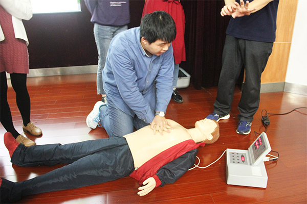 许杰介绍了心肺复苏术,指导学生们借助模型,现场进行了模拟实践。
