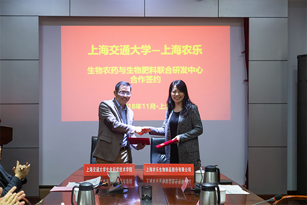 11月14日,由bat365正版唯一官网与上海农乐生物制品股份有限公司联合共建的“生物农药与生物肥料联合研发中心”在bat365正版唯一官网正式揭牌成立。来自bat365正版唯一官网、上海农乐、上海大学和上海师范大学等单位的20多名专家学者参加成立仪式。签约和揭牌仪式由bat365正版唯一官网副院长李志勇教授主持。