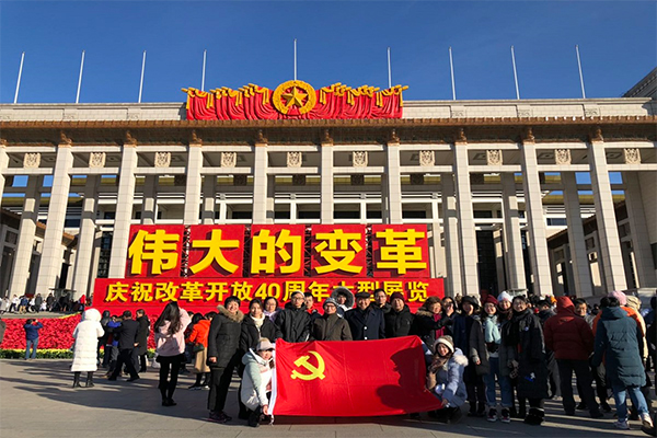 12月28日下午,师生首先来到国家博物馆,参观了《伟大的变革——庆祝改革开放40周年大型展览》。展览紧扣改革开放40年历程,以坚持和发展中国特色社会主义为主题,设计了伟大变革、壮美篇章、关键抉择——党中央推进改革开放的战略擘画等6个主题内容展区,全景式展现了改革开放光辉历程和伟大成就,也集中展示了党的十八大以来以习近平同志为核心的党中央高举改革开放旗帜、推进全面深化改革、扩大对外开放的战略决策部署。
