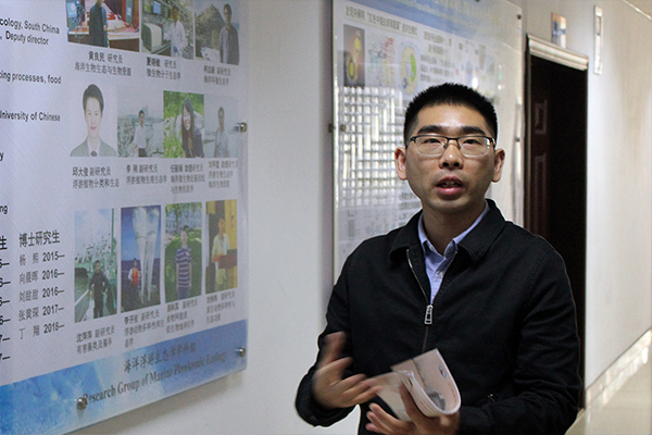 14日上午,实践团来到中国科学院南海海洋研究所,在巩三强的带领下参观中国科学院南海海洋生物标本馆及中国科学院热带海洋生物资源与生态重点实验室。实验室各课题组组长向实践团成员介绍了实验室情况,并指导成员开展藻类标本观察等实验,以加深同学们对海洋生态学的理解。