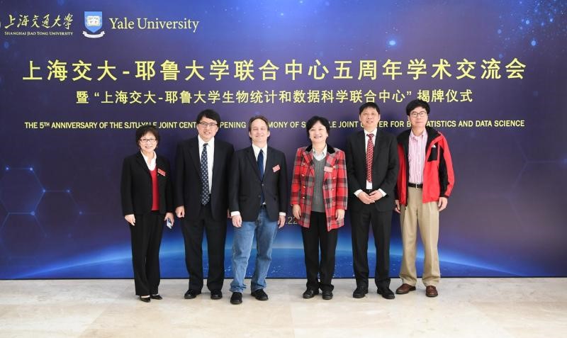 “上海交大-耶鲁大学生物统计和数据科学联合中心”前身是“上海交大-耶鲁大学生物统计学联合中心”(以下简称“生统中心”),成立于2014年3月,经过了五年的建设与发展,在科学研究、人才培养等方面双方取得了令人瞩目的合作进展。Lewis表示,耶鲁大学珍视与上海交大多年来的合作,也为两校如今在诸多领域取得的成果而感到自豪,期待彼此能保持这种势头。双方回顾了两校的合作历史,续签了校级合作协议,并将生统中心正式更名为“上海交大-耶鲁大学生物统计和数据科学联合中心”。数据科学不单是上海交大下一步的发展主题,也是耶鲁大学面向未来的五大发展方向之一,新中心的揭幕意在通过增加在生物医学数据科学这一前沿领域的合作,带动更多双边交流,也为提升两校转化医学领域的组学数据与临床数据研究做更大贡献。