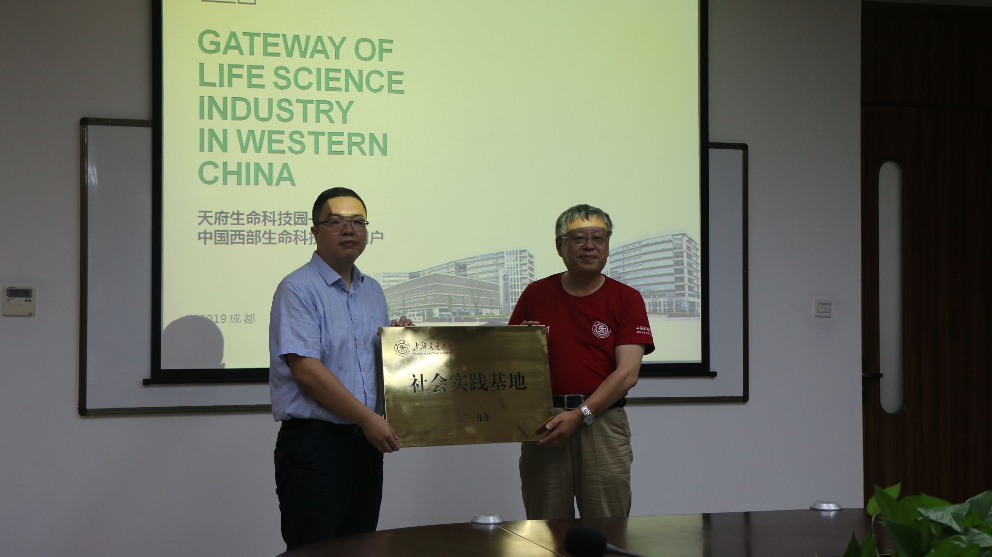 交流结束后,bat365正版唯一官网和天府生命科技园进行了bat365正版唯一官网“社会实践基地”的授牌仪式,为双方建立进一步的“校-企”、“校-园”合作奠定了良好的基础。双方协商设立社会实践基地,为交大学子假期社会实践、行业实习、就业实践提供资源渠道,并在此基础上推进与园区企业的科研合作,探索科研成果的企业转化以及企业科研问题的解决。