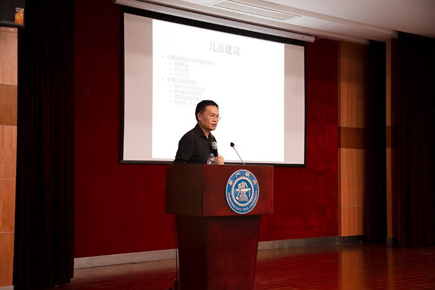乔忠东教授做题为《如何成长为合格的研究生》的主题讲座,提出学生应当脚踏实地、扎根科研,通过校友杨嘉墀的事例激励同学们“争名当争国家名,计利当计人民利”,做一个志存高远的交大人。