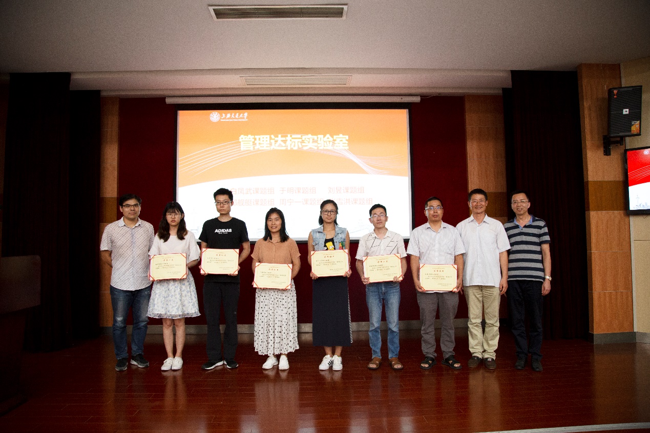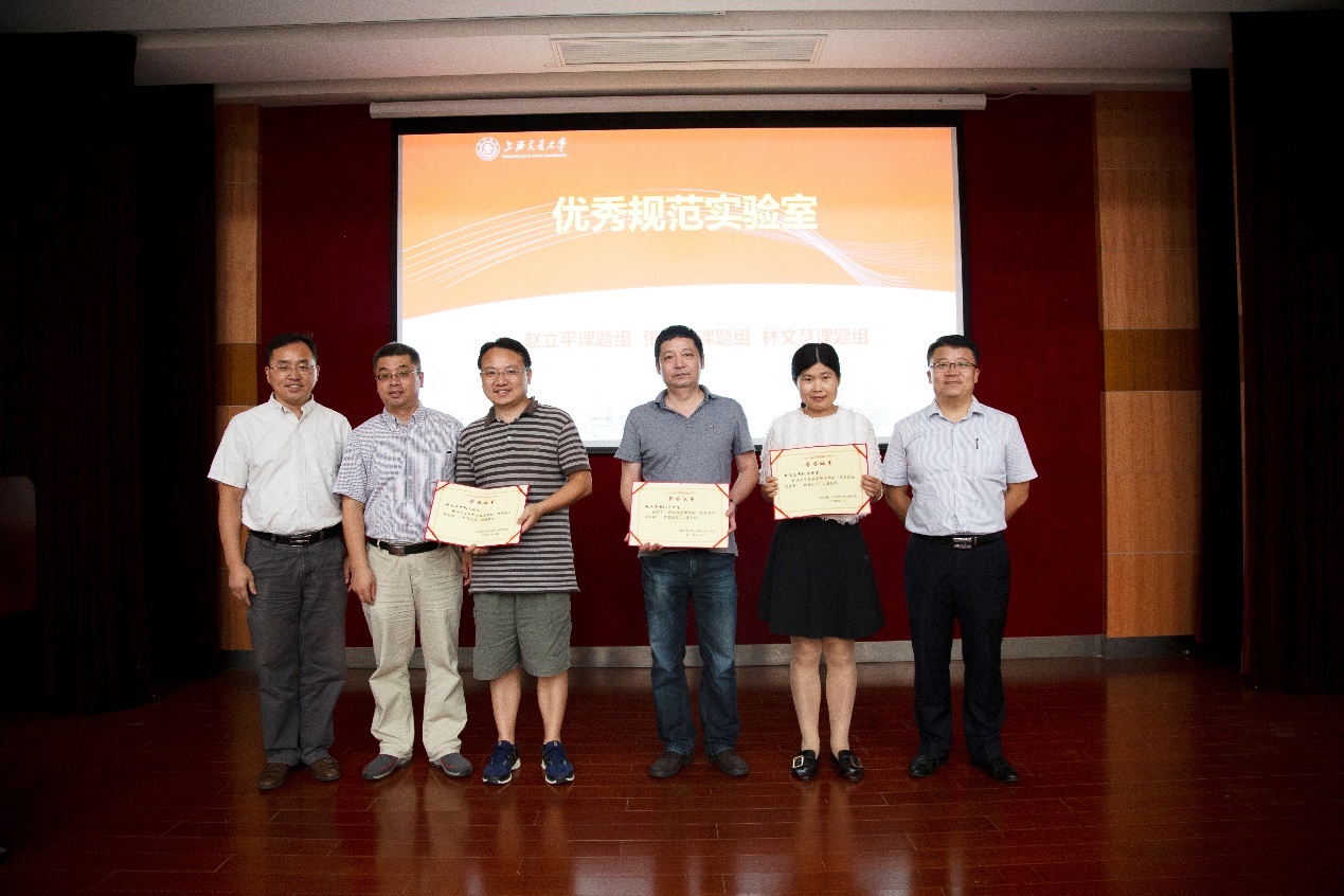 首先进行学院规范实验室评选活动的颁奖典礼。学院在4-6月中开展了规范实验室评选活动,张晓君副院长牵头,学院实验室办组织,系安全员、学生安全员按照教育部实验室安全检查星号条款进行检查打分。经过3次学院现场安全检查和2次学生安全员抽查中,从学院三十多个课题组中评选出3个优秀规范实验室以及6个管理达标实验室。其中,赵立平课题组、张大兵课题组和林文慧课题组获评“优秀规范实验室”,由嵇绍岭、林双君和彭华松为他们颁发了奖状。白凤武课题组、于明课题组、刘昱课题组、郑舰艇课题组、周宁一课题组和张雪洪课题组获评“管理达标实验室”,由张晓君、刘金生和杨斌为他们颁发了奖状。