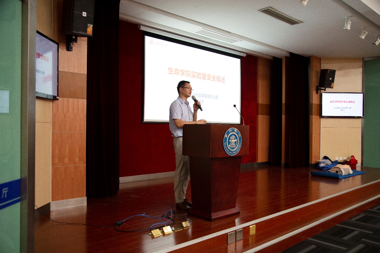 颁奖典礼结束后,2019级新生安全教育培训正式开始。嵇绍岭在讲话中指出,安全是所有科学研究的基础。安全工作无小事,安全教育是新生教育中最为关键和重要的部分。他强调,所有进出实验室的师生都应提高安全防范意识,增强自救互救能力;要规范实验操作流程,正确使用设备和试剂,用每个人的实际行动把好安全底线。