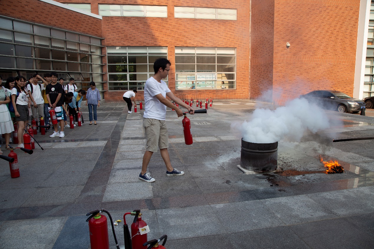 随后,2019级全体新生在生命药学楼3号楼大厅和广场前进行了应急救援和消防演练。