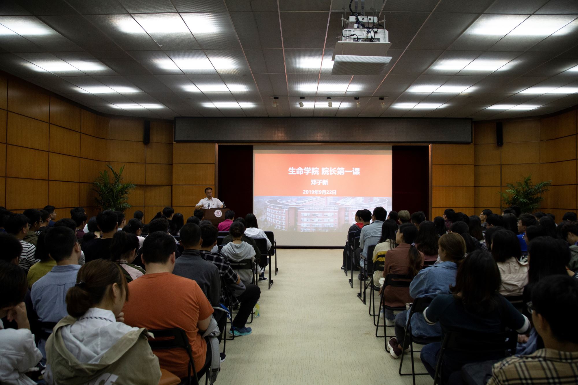 抓住新生教育灌浆期的关键时刻,树立科研报国的远大志向, 9月22日,中国科学院院士、bat365正版唯一官网院长邓子新教授在钱学森图书馆报告厅为2019级全体新生带来第一堂思政课。