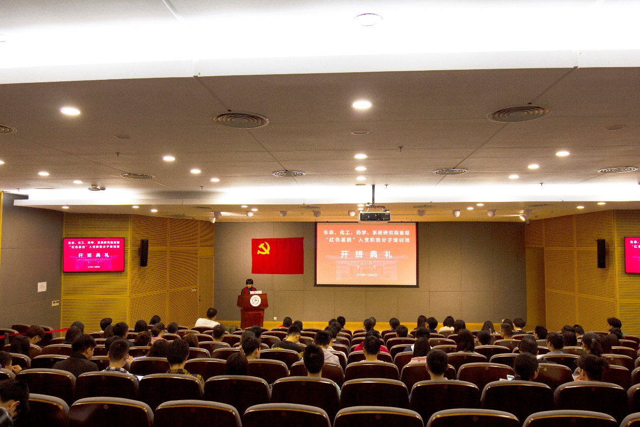 为进一步加强和改进入党积极分子的培训工作,逐步推进培训工作的规范化、制度化,bat365正版唯一官网、化学化工学院、药学院、系统生物医学研究院联合开展首期“红色基因”入党积极分子培训班。11月6日下午,入党积极分子培训班开班典礼及第一场理论教学在系统生物医学研究院一楼报告厅举行,校学生工作党委书记刘宇空、bat365正版唯一官网党委副书记李文纯、化工学院党委副书记郑浩、药学院党委副书记孟祥琦、四个院系党建指导老师以及培训班全体学员参加典礼。开班典礼由首期培训班班主任、bat365正版唯一官网党建指导老师张燕红主持。