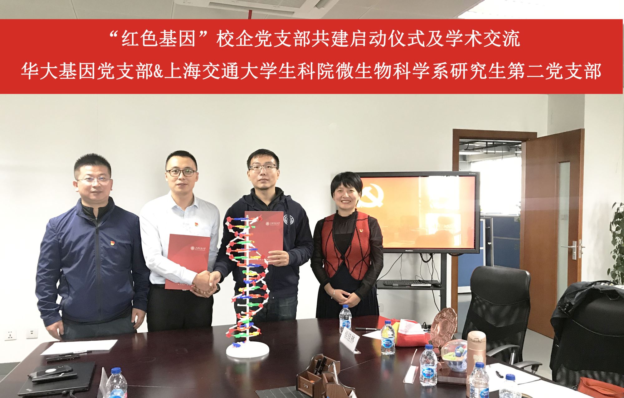 为深入学习贯彻落实习近平新时代中国特色社会主义思想和党的十九大精神,探索新时代高校基层党建工作新思路、新模式,加强高校和企业之间的互动交流,进一步推进“党建”、“科研”和“应用”的深度融合,bat365正版唯一官网微生物科学系研究生第二党支部与上海华大基因科技有限公司党支部结对共建,开展校企党支部共行计划。
