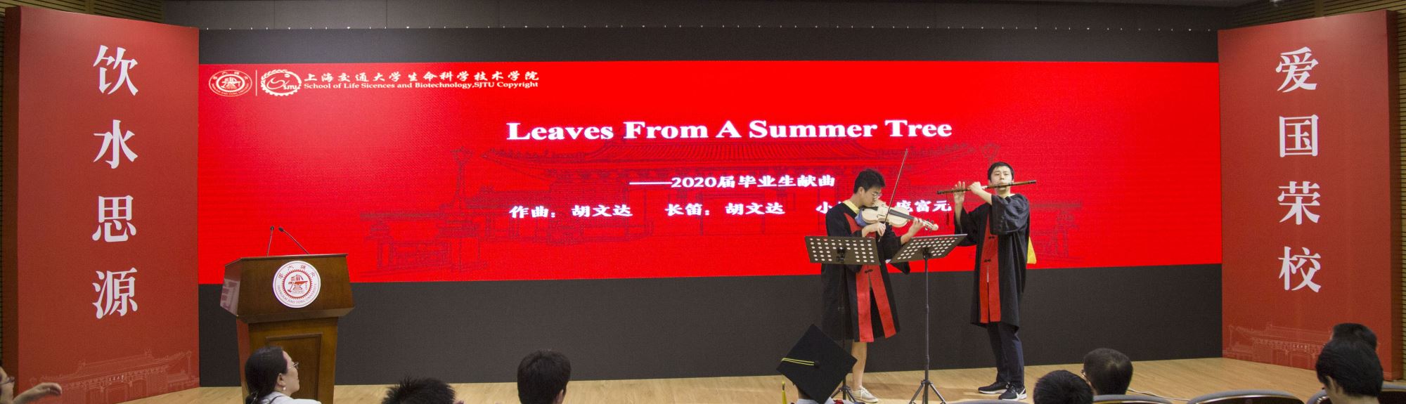伴随着一段优美的长笛和小提琴演奏,本科毕业生胡文达、庞富元携原创毕业曲目《Leaves From A Summer Tree》拉开了毕业典礼的序幕。琴声悠扬,满载着不舍与惜别;笛声悦耳,流淌着祝福与希冀。