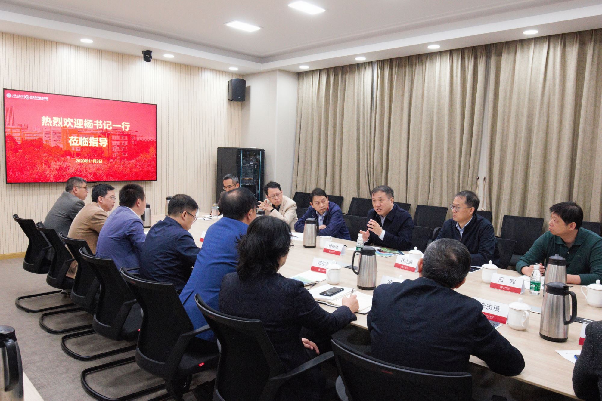 11月3日上午,校党委书记杨振斌到bat365正版唯一官网调研。学院领导班子成员,系、中心负责人和教师代表参加调研座谈,校党政办负责同志一同调研。