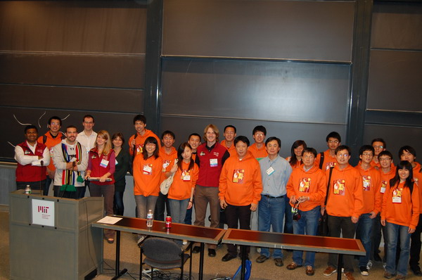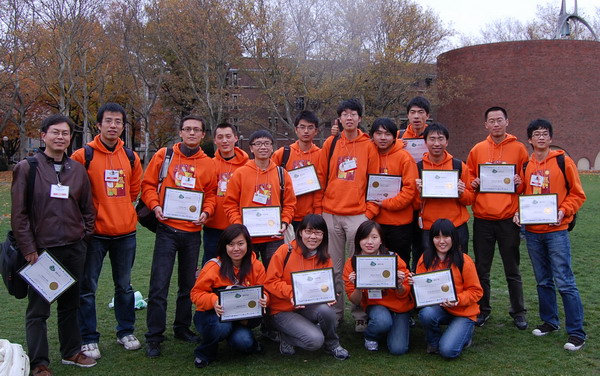 图片说明:上海交大代表队在MIT校园里庆祝获奖