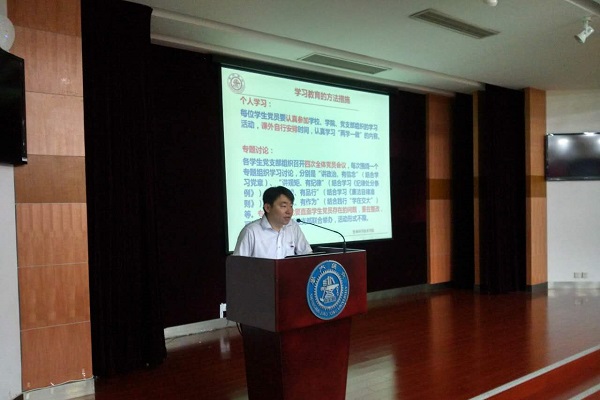 在李逸舟的领誓下,全体党员在党旗下重温入党誓词。仰颐代表学院党委向受表彰的优秀个人表示祝贺,并与全体学生党员共同为党的95岁生日喝彩。仰颐从习近平总书记在“五四”讲话中对广大青年提出的“勤学、修德、明辨、笃实”出发,希望学生党员不仅要在学业上积极进取,也要在“两学一做”教育中勤奋学习,用理论武装自己,体现出党员的先锋模范作用。对于网络上对中国共产党的议论,作为青年党员应正确加以分辨,政治立场必须坚定,切忌人云亦云,要坚持自己的共产主义信仰,踏踏实实地做一名合格党员。