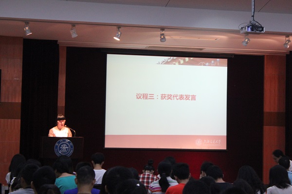 生物工程系研究生第二党支部孙妍作为获奖代表发言,她围绕“充分认识自己,履行对党的诺言”,告诉同学们在理想信念上要坚定地挑战自己,发现自己,在学习上要时刻地激励自己,肯定自己。她提出,自我管理是保持党员先进性和体现党员先锋模范作用的基础。