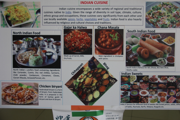 现场精美的布置处处透露着印度的风土人情,营造出了一种浓厚的异域氛围,展板上详细的介绍加深了同学们对印度这个古老国度的理解和认识,也进一步增进了不同国家同学之间的友谊。