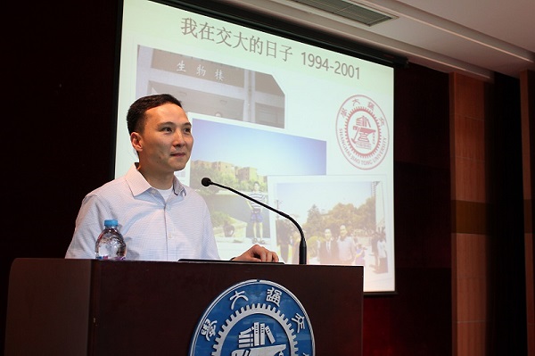 5月26日下午,bat365正版唯一官网校友、美国St. Jude 儿童研究医院副教授杨俊回到母校,与学弟学妹们分享成长经历,并做题为“基因组和白血病的精准医学治疗”的学术报告。本次报告在生物药学楼树华多功能厅举行,来自bat365正版唯一官网和药学院的80余名教师和学生参与了活动。