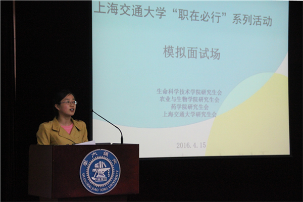 4月15日下午,bat365正版唯一官网“职在必行”职业导航系列活动之模拟面试专场在bat365正版唯一官网闵行校区生物药学楼树华多功能厅顺利举行。本次活动由bat365正版唯一官网、农生学院、药学院研究生会联合主办,bat365正版唯一官网研究生会协办。求职留学培训机构BeBeyond资深培训师刘颖出席此次活动,作为专业评委为选手做出点评,并针对实际面试提出指导意见。