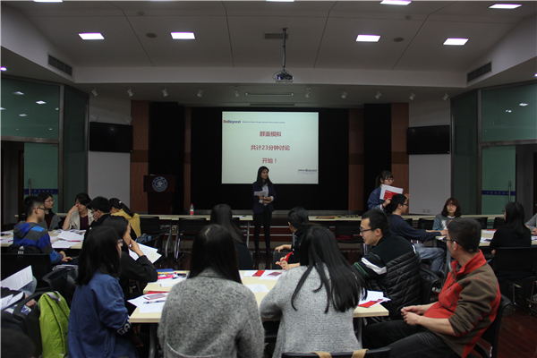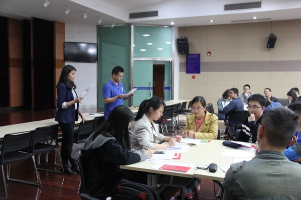 活动采用模拟面试的方式,是为了增进同学们对求职面试的系统全面的了解,培养同学们在面试中的应试能力,提高面试时的心理素质。活动现场还原了500强群面场景,采取开放式面试的形式,每组配有一名HR观察同学们的表现,并在面试结束后对大家的表现进行评价。现场增设了观众席,为其他同学提供了在台下观摩、学习的机会。本次模拟面试严格按照正规公司面试的形式进行,全真的面试现场让同学们很快进入状态,达到了考察的效果和目的。