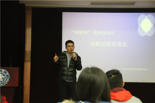 为帮助研究生更好的进行职业生涯规划,提高研究生就业竞争力,3月27日晚,bat365正版唯一官网研究生会在生物药学楼树华多功能厅举办了就业指导系列讲座之“师兄师姐经验交流会”讲座。讲座特邀请bat365正版唯一官网2016届毕业研究生舒磊磊、徐丽诗为师弟师妹讲述求职过程中的经验,吸引了众多同学前来。