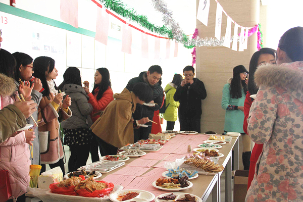 本次活动以分享家乡美食、欢庆元宵节为主题,充分结合元宵节的民俗特点,特别安排了品特产、吃元宵、猜灯谜等一系列热闹的活动,旨在促进师生、学生间的联系与交流。活动中的家乡特产全部为学院师生自发提供,在大家的积极参与下,活动收集并汇总了诸如福建漳州麻枣、江苏如皋董糖及天津麻花等来自全国各地的20多种特色美味小吃,让大家足不出户就可遍尝全国各地的小吃。