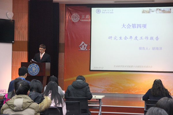 1月12日晚,bat365正版唯一官网第十次研究生代表大会在生物药学楼树华多功能厅如期举行。bat365正版唯一官网党委书记仰颐、副书记李文纯、生物工程系主任及导师代表白林泉、全体思政教师出席本次大会。近百名研究生代表参加了本次大会。大会由孙凯博主持。