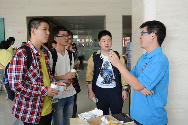 午餐会后,学院及专业介绍会在树华多功能厅举行。李文纯老师从bat365正版唯一官网的整体构架、学科设置、师资力量及近几年毕业生的发展等方面向同学们做了全面的介绍。接着,乔忠东老师、韦朝春老师和夏小霞老师分别详细介绍了生物技术、生物信息和生物工程三个专业。乔老师从“什么是生命”的定义展开,利用各个教授的研究方向把“生命研究可以做什么”这一问题娓娓道来;韦老师通过一段精彩的视频展示了生物信息与生物统计系;夏老师详细介绍了生物工程专业的学科特色、研究领域及未来发展等同学们关心的问题。同学们都认真记下笔记,作为自己今后选择专业重要的参考。