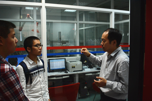 介绍会后,新生们在学长的带领下参观了微生物代谢国家重点实验室、公共仪器服务平台、实验教学中心及各系代表性实验室。各种高端仪器、瓶瓶罐罐里各种颜色的生物牢牢地抓住了同学们好奇的目光。