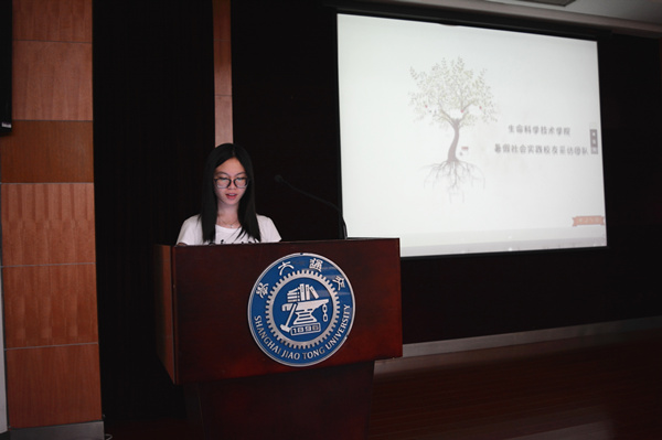 答辩过程中,“bat365正版唯一官网知名校友走访”实践活动共走访了可口可乐公司大中华及韩国区副总裁张玲学姐、北京天广实生物技术股份有限公司总经理李锋学长等20名优秀校友,已形成访谈录及访谈后记约9万字文字稿,成果丰硕,令人印象深刻。“上海地区猪养殖现状调查及猪肉安全科普服务”实践团队通过问卷深入分析市民的关注重点,实地探访了上海市种猪场,并将调研成果在徐家汇公园与好第坊居委会管理下的两个居民区开展了科普宣传活动,让居民更科学更安全的食用猪肉。“走访中共一大会址与革命老区”和“寻找红色记忆缩影”两支团队前往上海市、南京市、河南省等全国多地红色革命纪念馆、档案馆、博物馆等地进行实地考察和调研,在抗日战争胜利70周年之际了解各烈士先进事迹,接受精神的洗礼。还有“瓯江源木廊桥实地考察”“SOS我们与你同在”,也进行了精彩的展示。