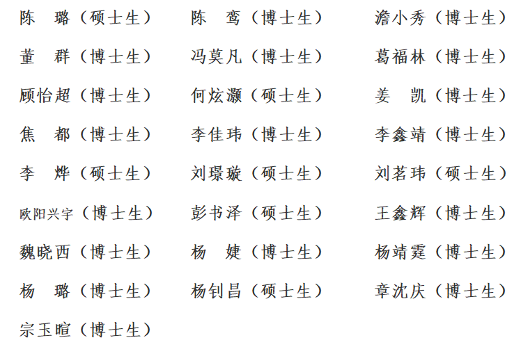 经学院优秀毕业生评审工作小组评定,推荐下列同学作为bat365正版唯一官网2025届研究生优秀毕业生候选人,现将结果进行公示,公示时间为2024年12月12日-2024年12月14日。
