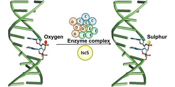 DNA磷硫酰化是硫原子取代DNA骨架非桥联氧原子的一种新型表观遗传学修饰,这种修饰广泛存在于原核生物中。由德林教授研究小组最近阐明其5个修饰基因中dptB基因为负调控基因,在转录水平上调控DNA磷硫酰化修饰基因的表达(Cheng et al, Molecular Microbiology 2015, doi: 10.1111/mmi.13096),但其它4个修饰基因在DNA磷硫酰化修饰过程中的具体功能以及修饰蛋白对DNA底物的识别机制目前尚不清楚。