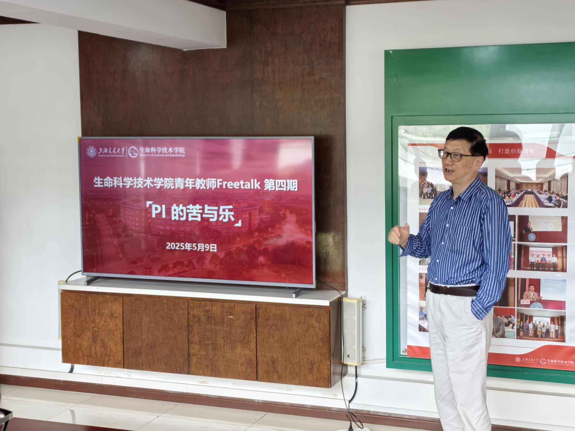 2025年5月9日,bat365正版唯一官网青年教师联谊会在教工之家举办第四期Freetalk活动。本期主题为“PI的苦与乐”,特邀学院党委委员、遗传与发育科学系党支部书记、国家高层次人才杨选明教授作为主讲人。副院长唐鸿志、副书记王鑫、微生物科学系主任周宁一,以及30余位青年教师参加本次活动。活动由唐鸿志副院长主持。